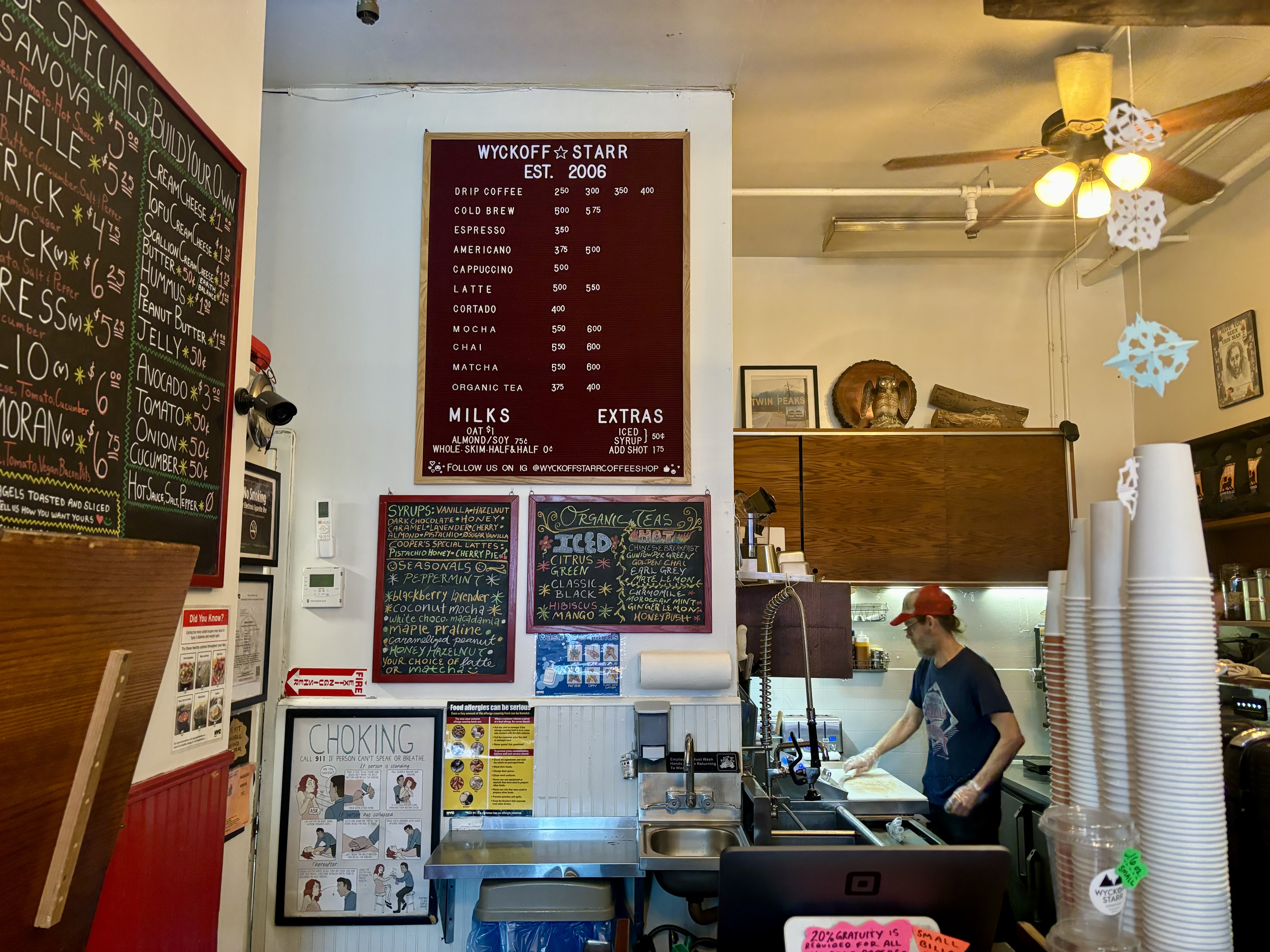 Another local Bushwick favorite, Wyckoff Starr was our stop for oat milk lattes before taking the subway to the Staten Island Ferry to see the Statue of Liberty. It’s cozy with limited seating, which makes it perfect for grabbing coffee on the go before a busy day. The shop is also Twin Peaks themed, which I thought was fun. If I hadn’t already eaten, I absolutely would’ve tried one of their house-made bagels, because they had a seriously tempting menu.